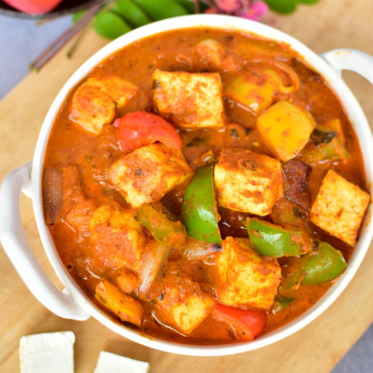 soft paneer cubes cooked in a rich, spiced tomato gravy with aromatic herbs and peppers.
